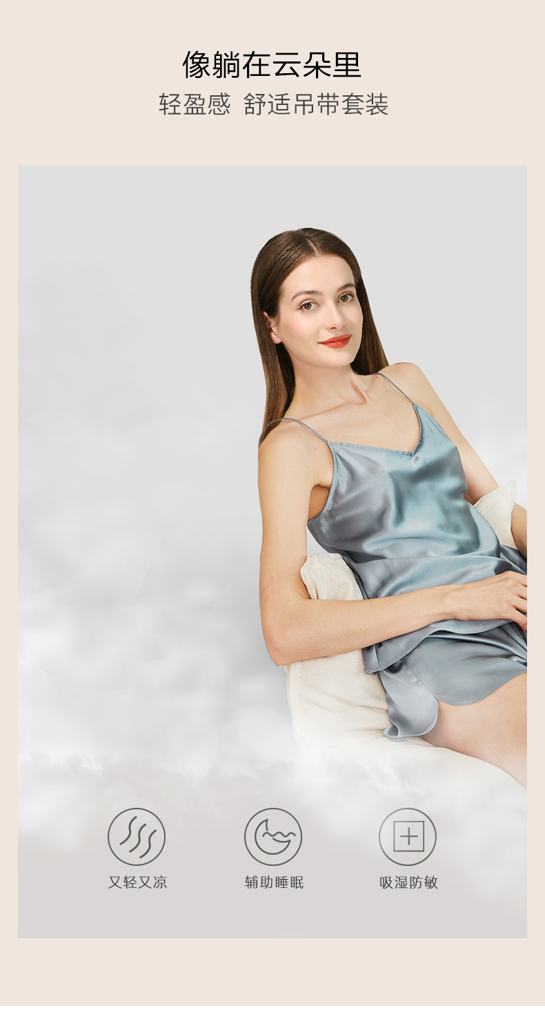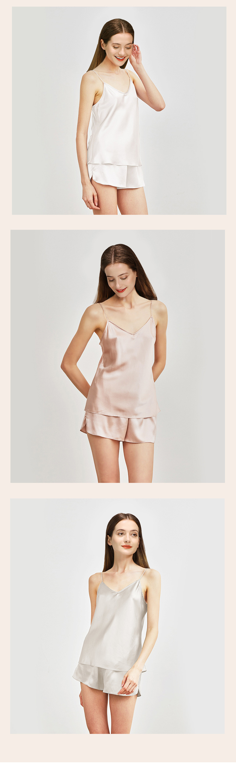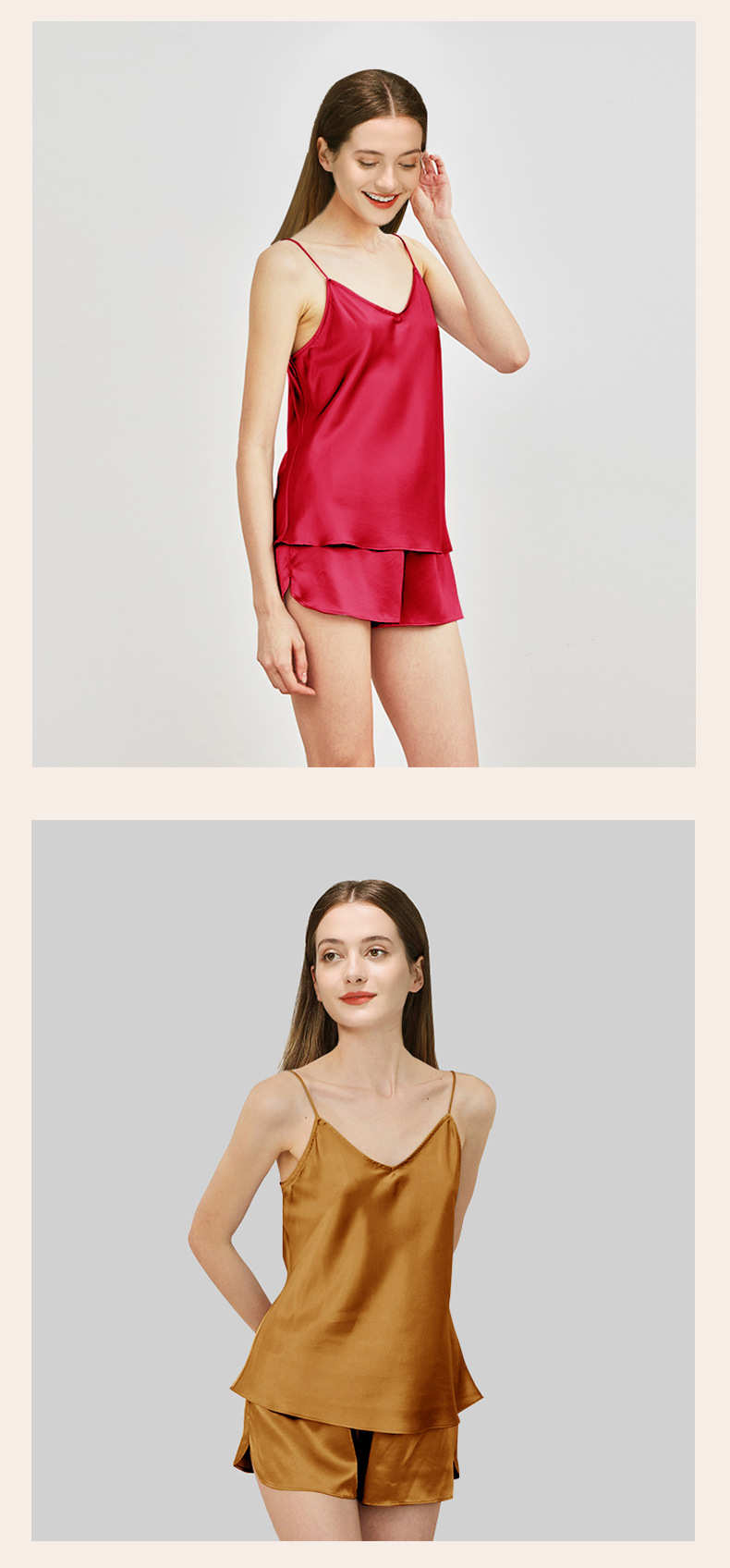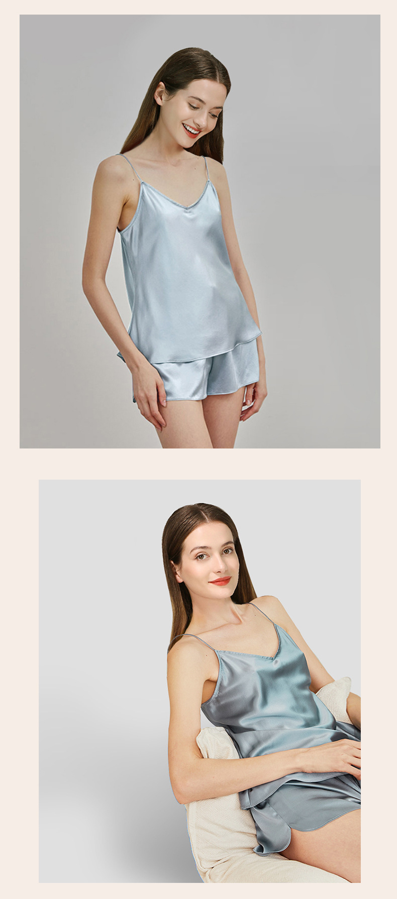 Cookonie 새로운 슬링 잠옷 세트 19 mm 무거운 실크 잠옷 가정 옷 100 뽕나무 실크