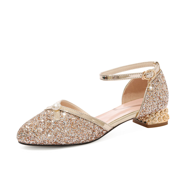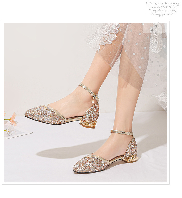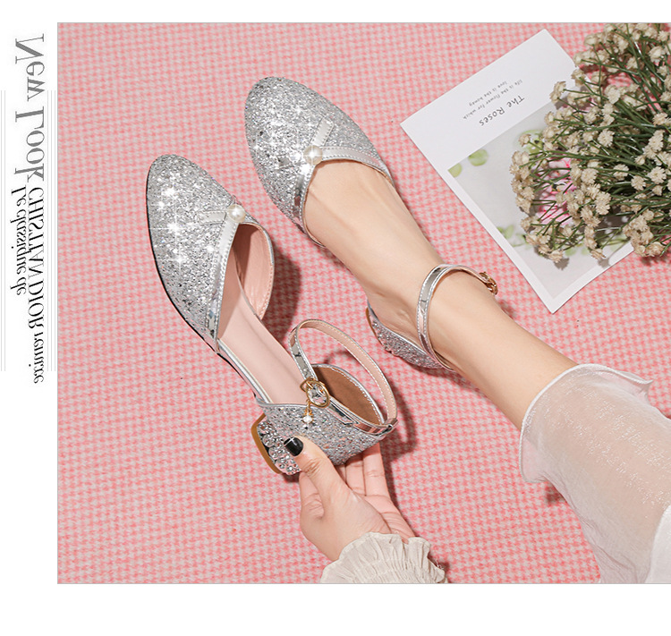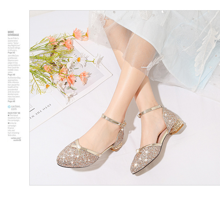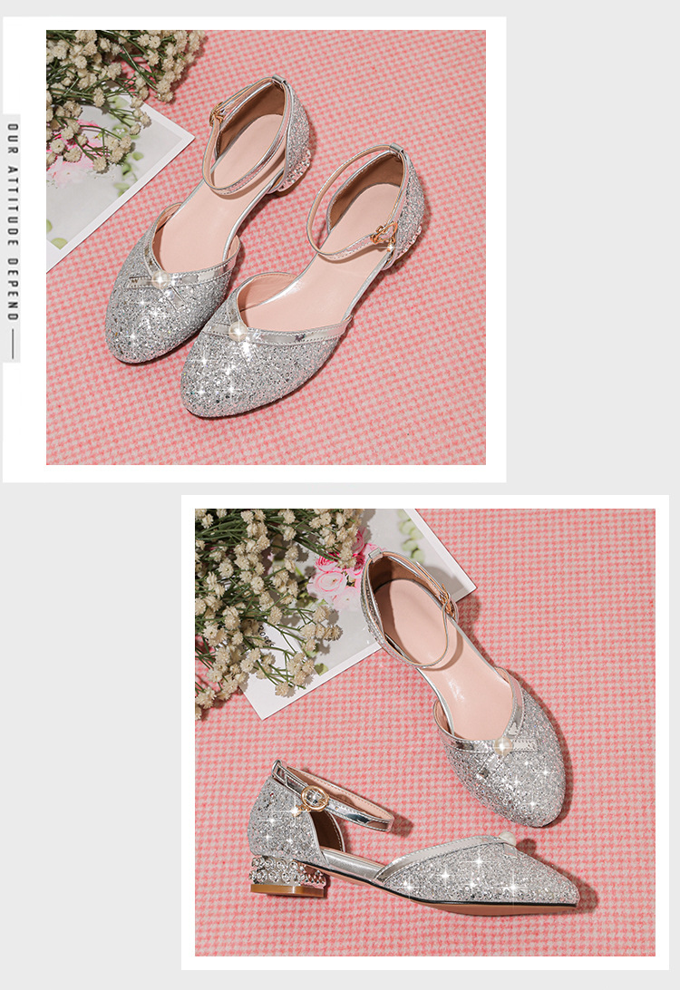 여아 샌들 대형 어린이 원피스 크리스탈 신발 실버 스팽글 공주 신발 무대 쇼 작은 호스트 어린이 신발스토어 가기
