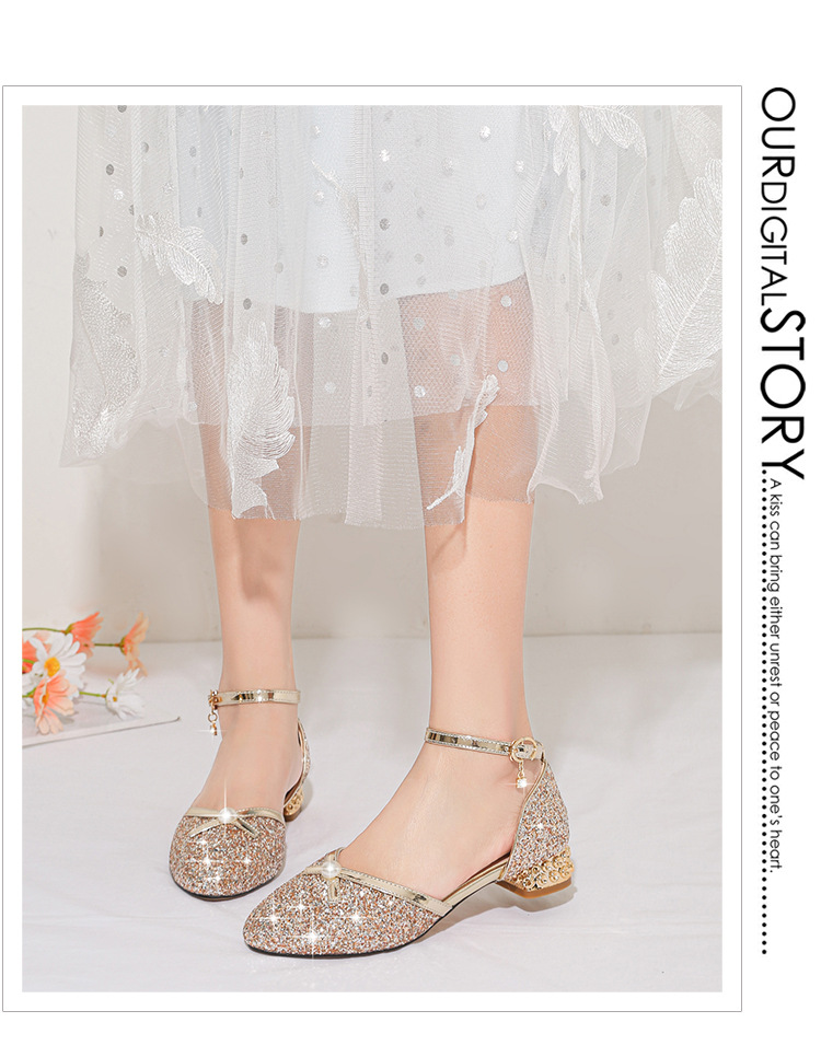 여아 샌들 대형 어린이 원피스 크리스탈 신발 실버 스팽글 공주 신발 무대 쇼 작은 호스트 어린이 신발