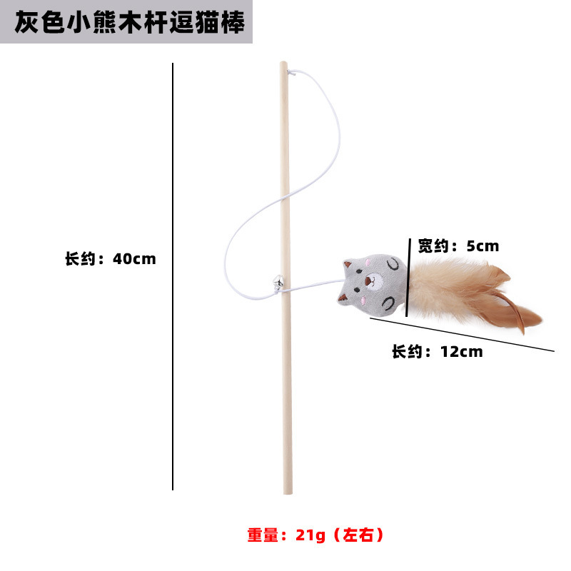 • 회색 곰돌이 나무 막대 고양이 낚싯대