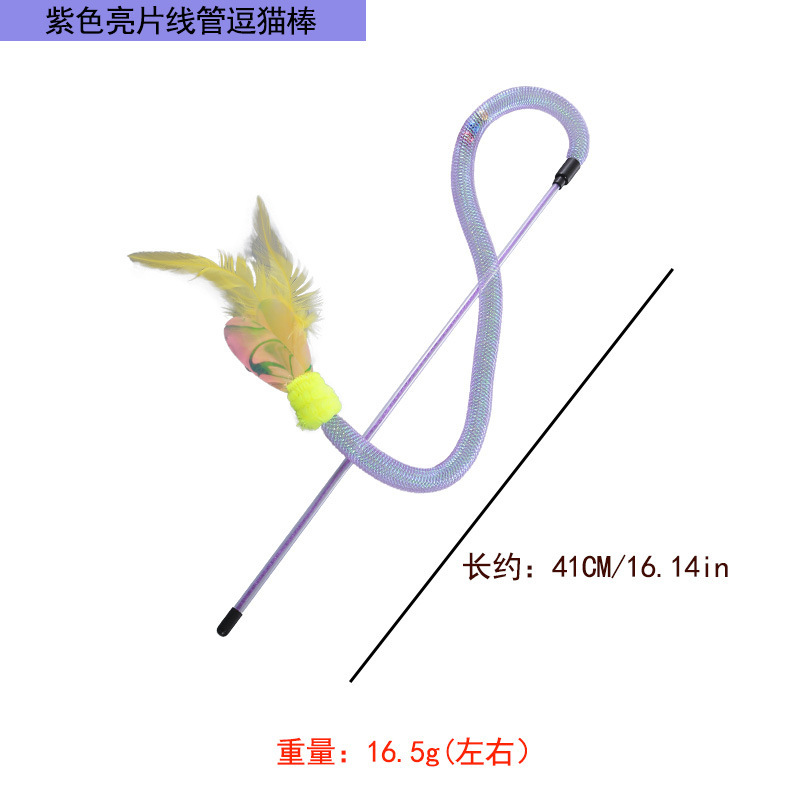 • 보라색 스팽글 와이어 튜브 고양이 놀리는 스틱