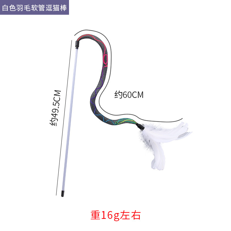 • 흰색 깃털 그라데이션 호스 고양이 유혹 스틱