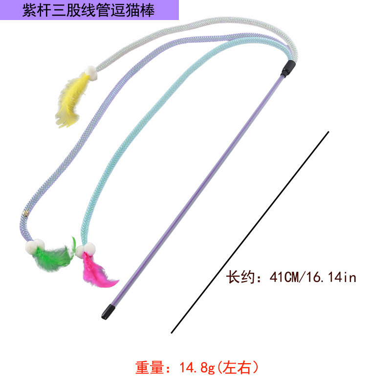• 보라색 막대 3가닥 와이어 튜브 고양이 놀리는 막대