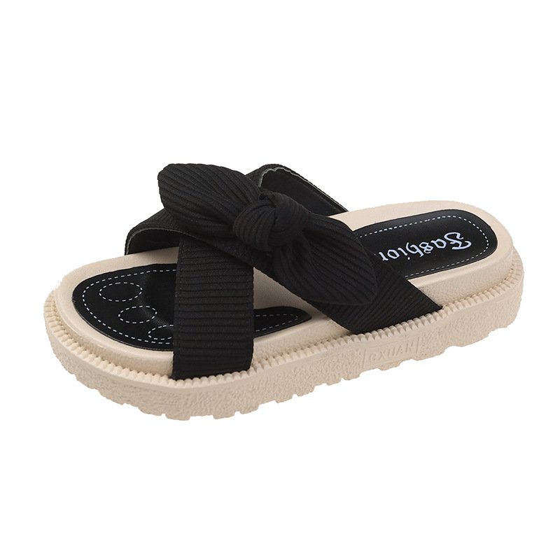 가을 2022 새로운 활 머핀 두꺼운 바닥 크로스 슬리퍼 여성 착용 패션 두꺼운 바닥