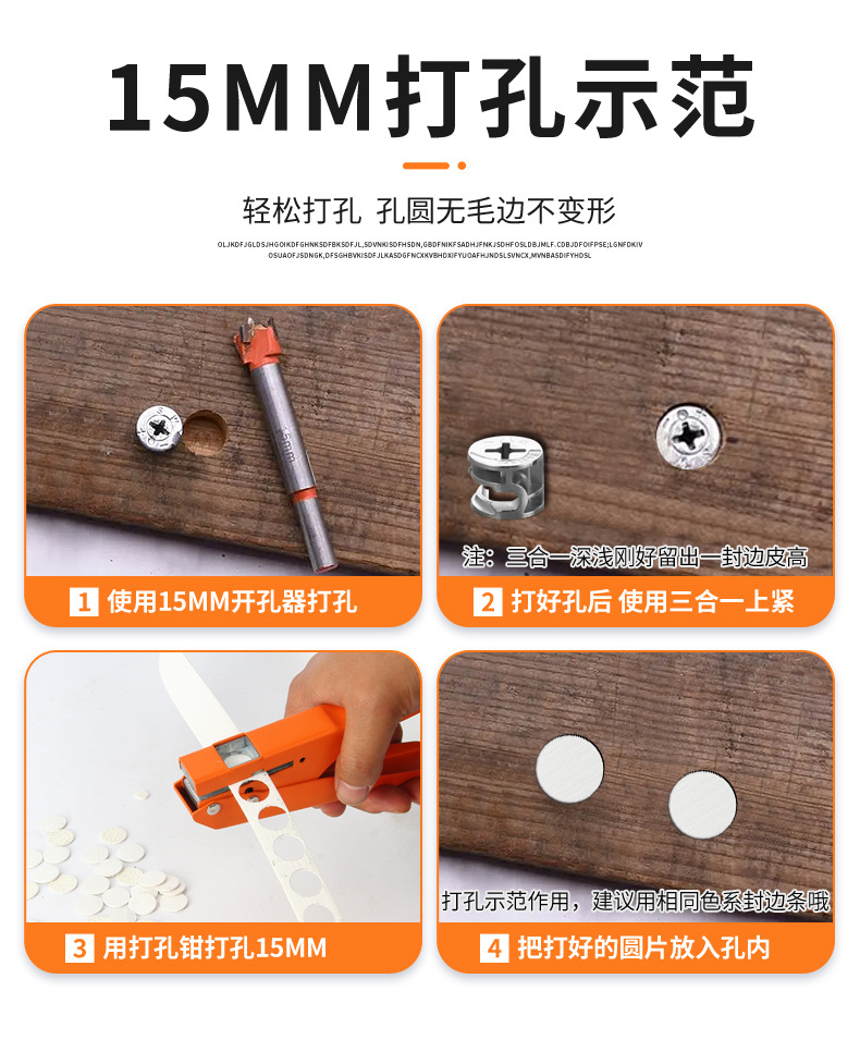 • 12mm 엣지 밴딩 스트립 펀칭 플라이어 + 카운터싱크 드릴