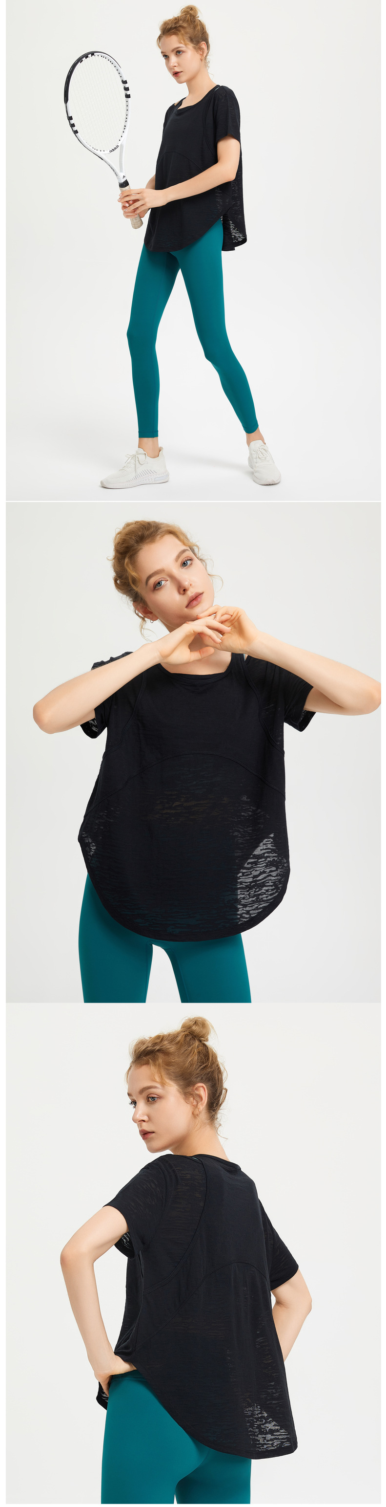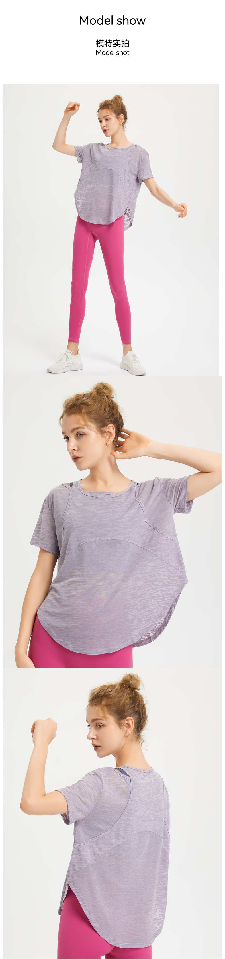 크로스보더 루즈핏 스포츠 반팔 투피스 런닝 티셔츠 통기성 요가복 여성용 피트니스 속건성 땀흡수 커버업 여성용