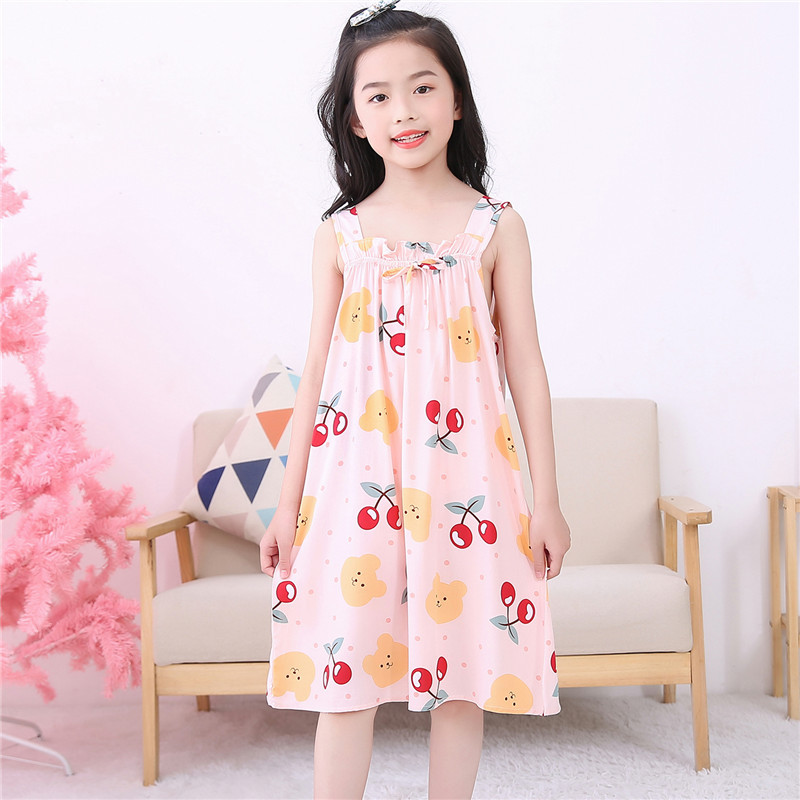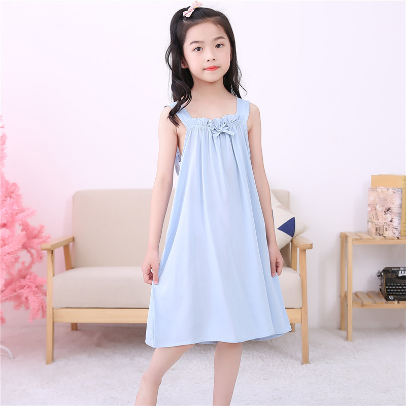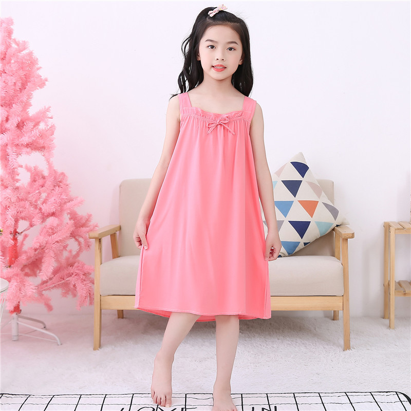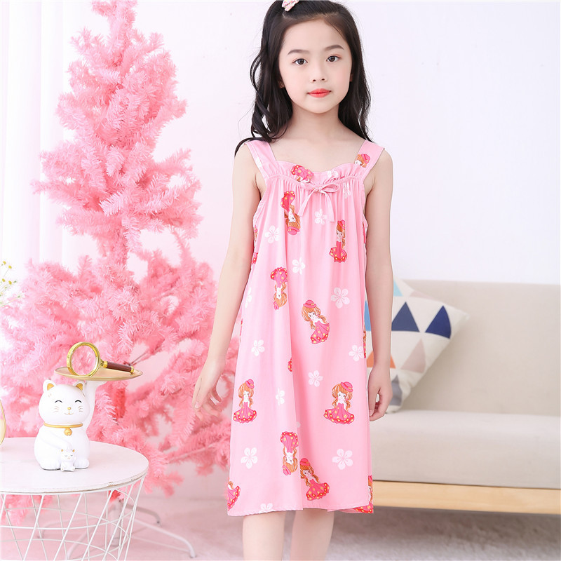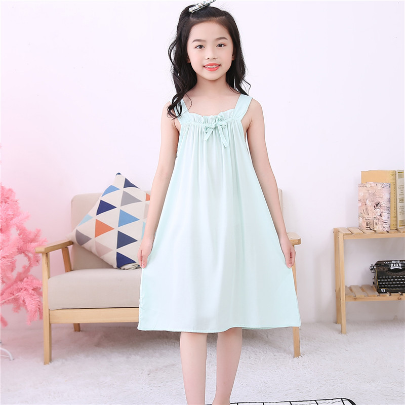 여자의 잠옷 면 실크 슬립 스커트 공주 치마 큰 어린이 치마 여름 얇은 어린이 면 실크 원피스 잠옷