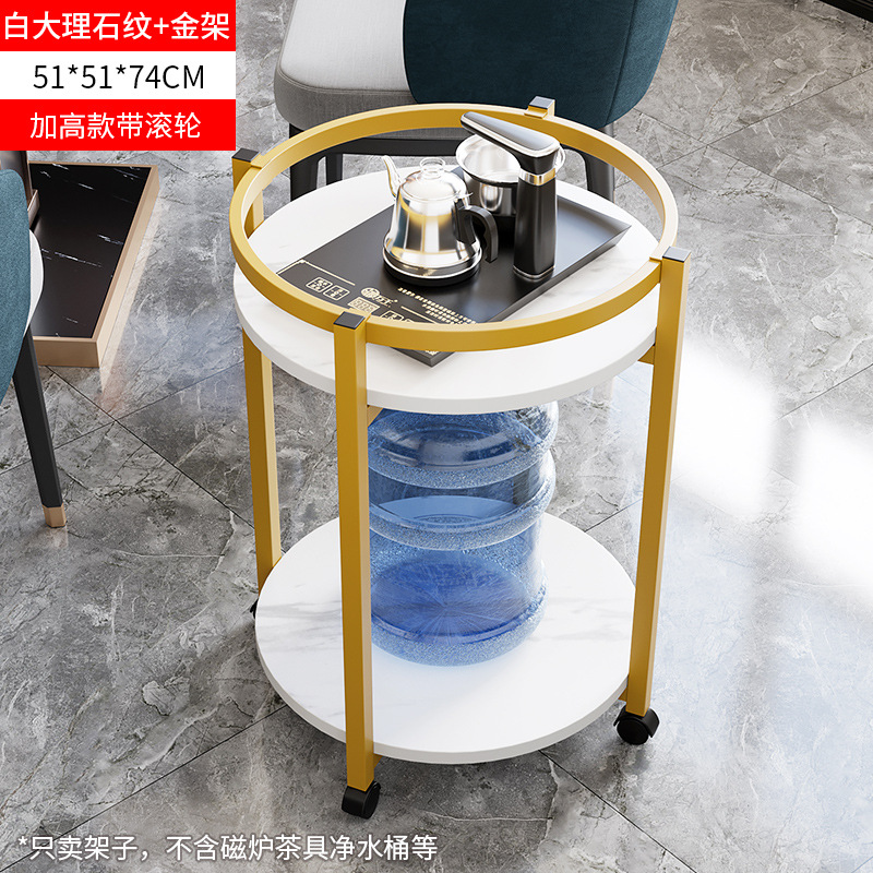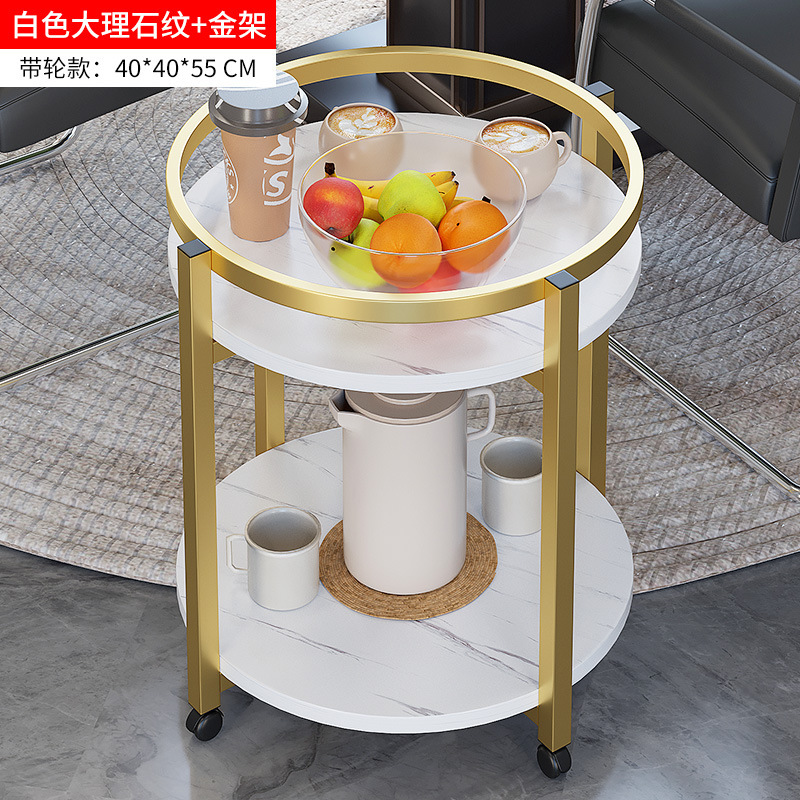 • 바퀴가 달린 흰색 대리석 골드 프레임
