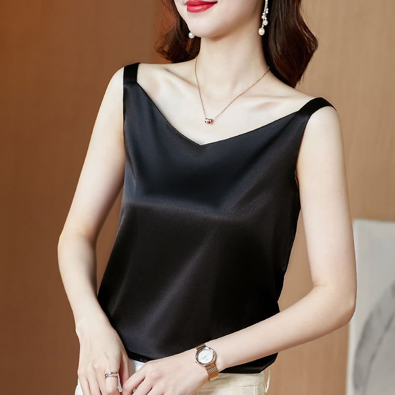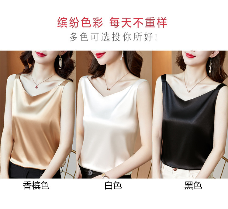 봄과 여름 V-넥 캐미솔 여성용 아이스 실크 새틴 겉옷 민소매 샴페인 컬러 세트 이너 베이스 셔츠스토어 가기
