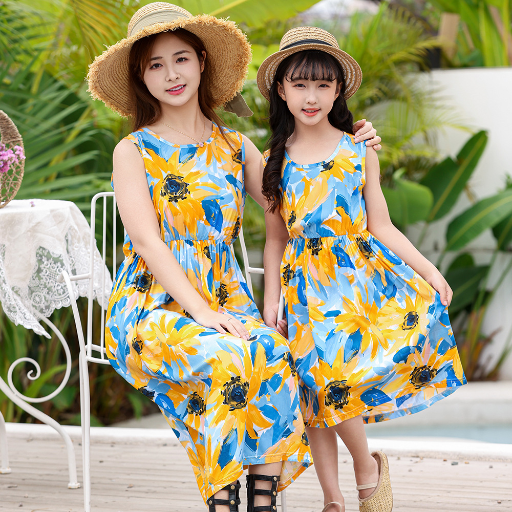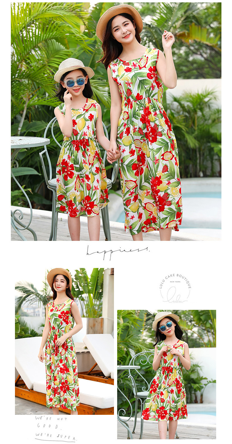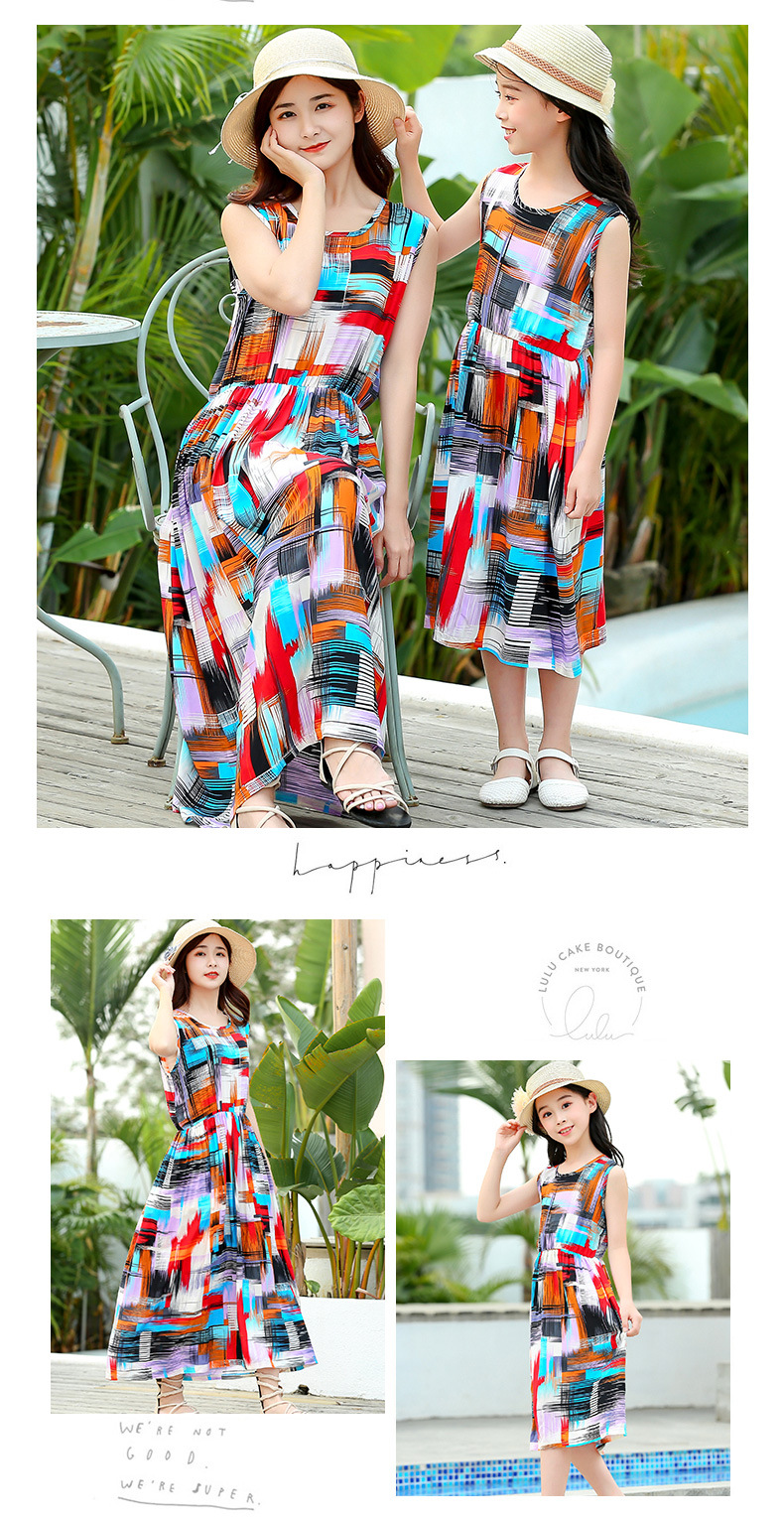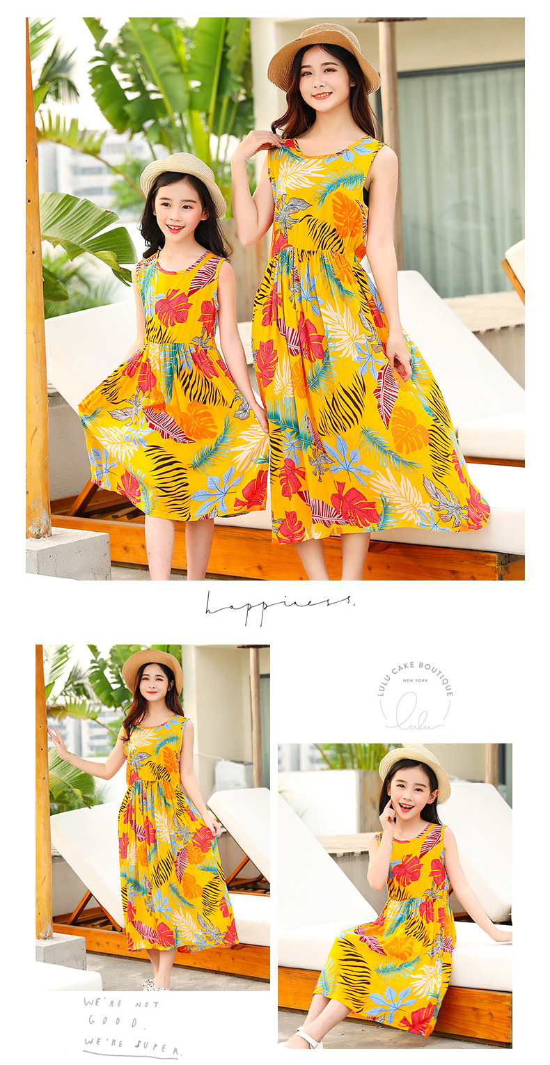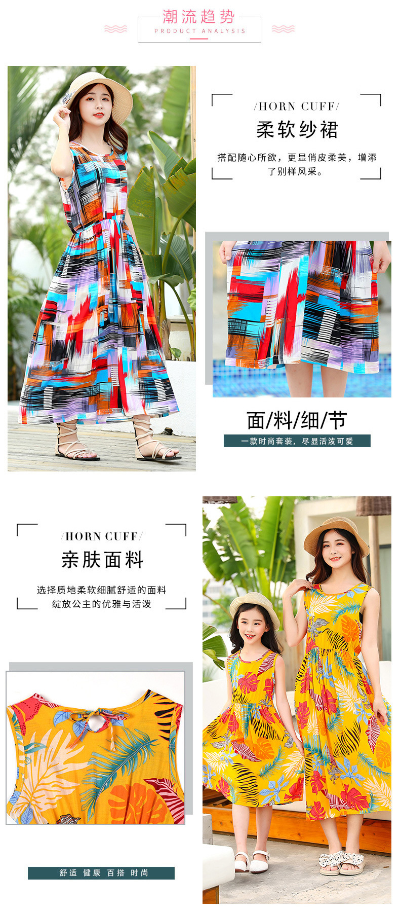 여아 원피스, 부모-자녀 여름옷, 비치 드레스, 중대형 여아용 달콤한 휴가 스타일 민소매 패셔너블 공주 드레스스토어 가기