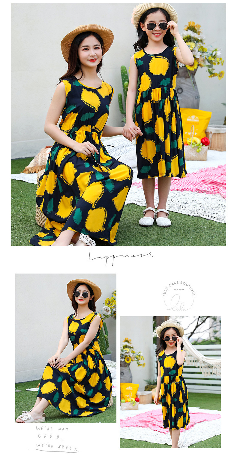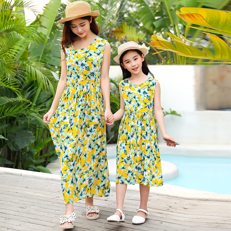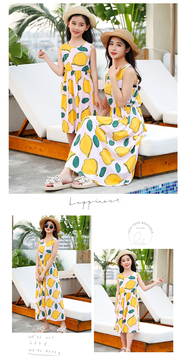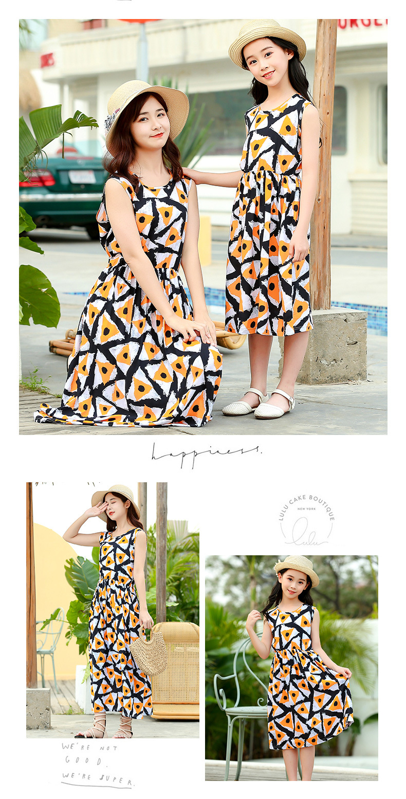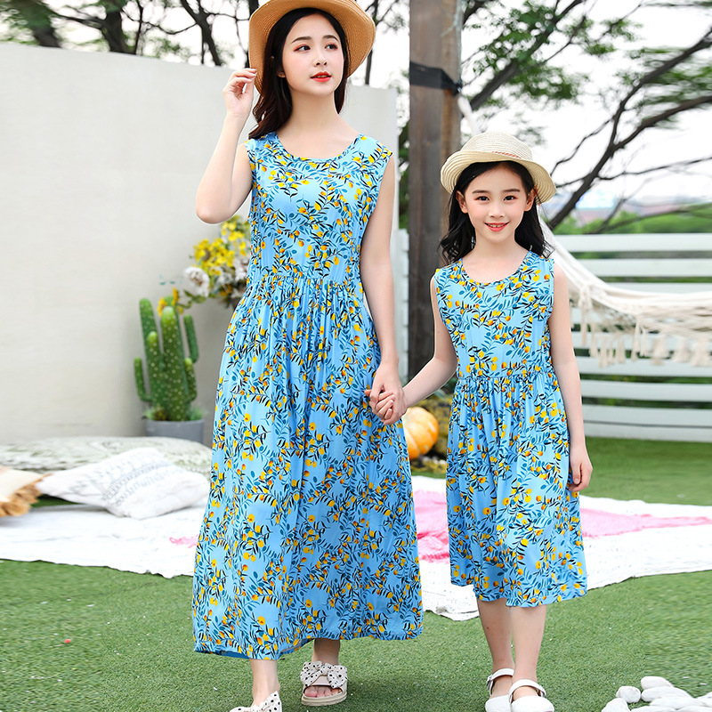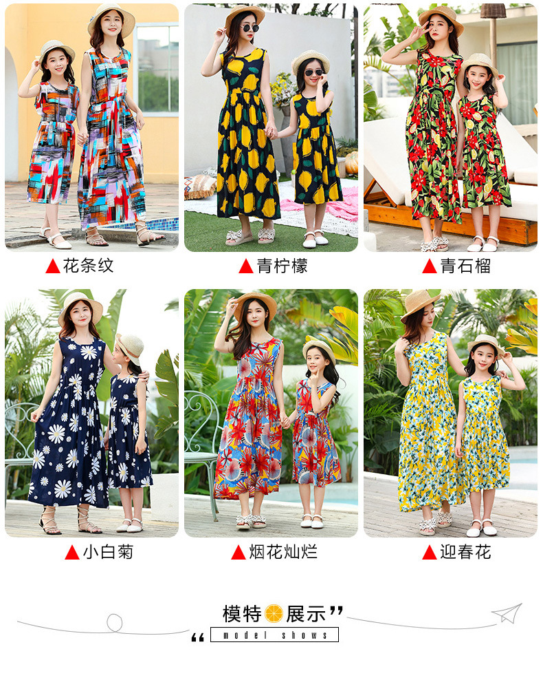 여아 원피스, 부모-자녀 여름옷, 비치 드레스, 중대형 여아용 달콤한 휴가 스타일 민소매 패셔너블 공주 드레스스토어 가기
