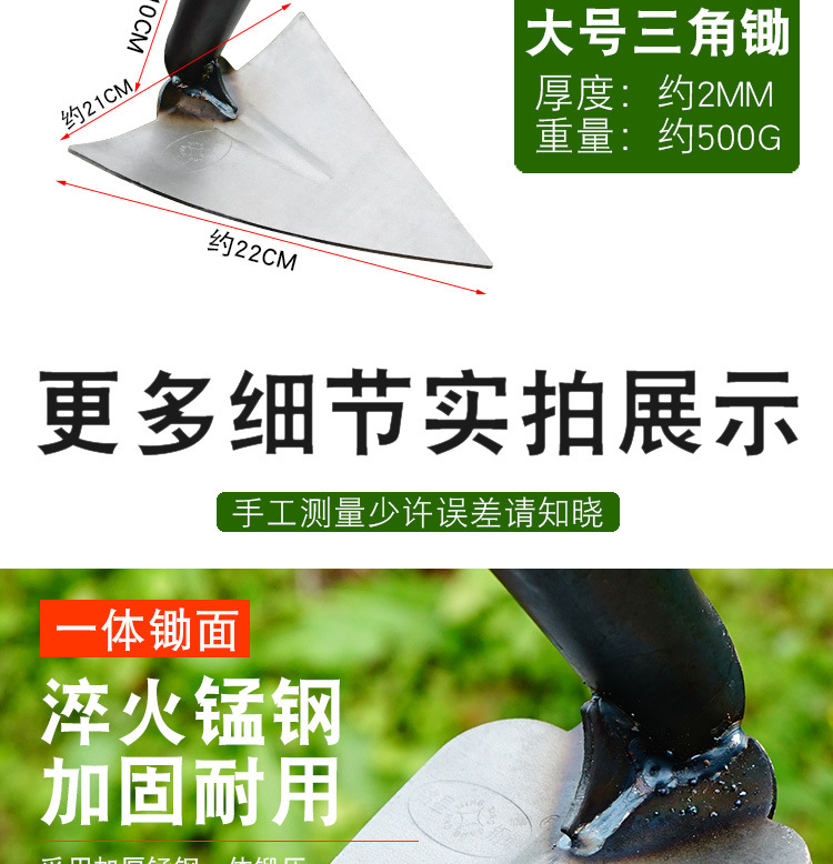 망간 강철 삼각형 도랑괭이 뾰족한 괭이 큰 곡괭이 뽑기 괭이 비료동과 고랑 나무 손잡이 뾰족한 괭이 열린 황무지와 야채를 기른다