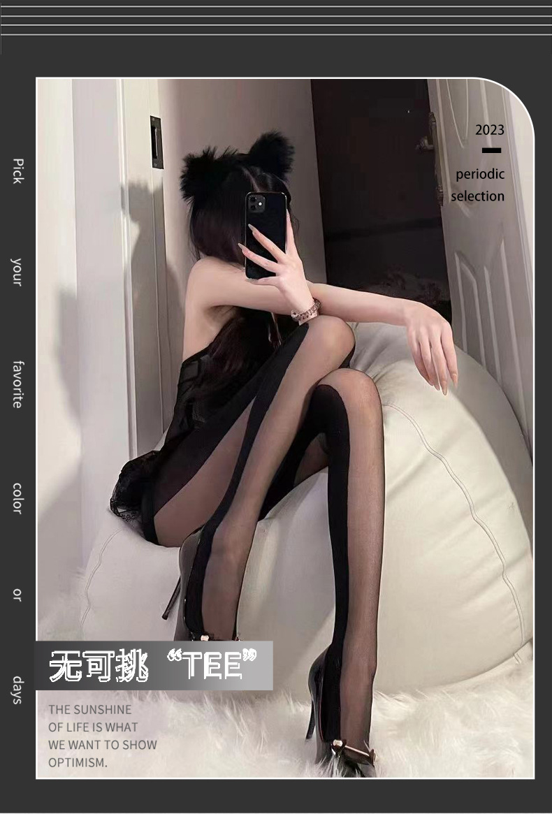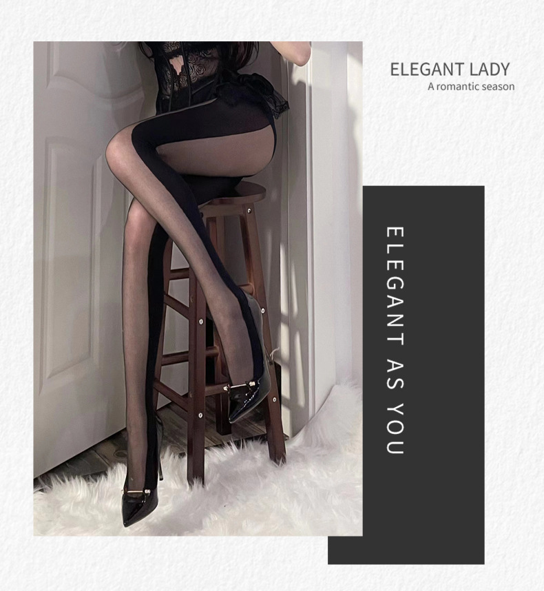 장 Huimei 같은 스타일 내부 및 외부 세로 줄무늬 블랙 실크 그림자 바느질 재미 실크 스타킹 여성용 안티 후크 실크 메쉬 빨간 팬티 스타킹스토어 가기