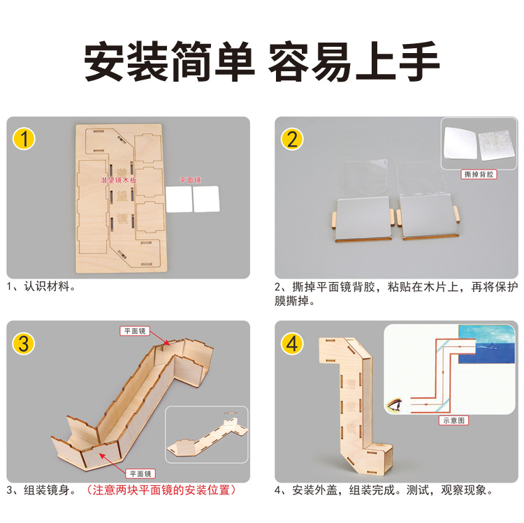 과학 기술 작은 생산 자체 제작 잠망경 증기 과학 물리학 반사 실험 교육 재료 초등 학생 장난감스토어 가기