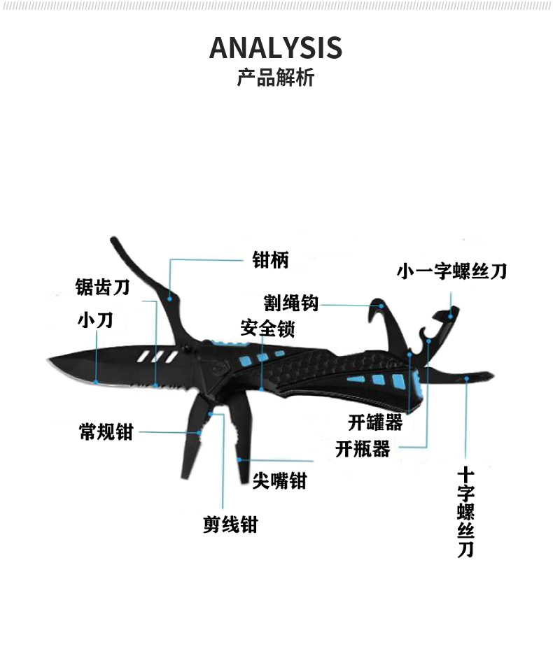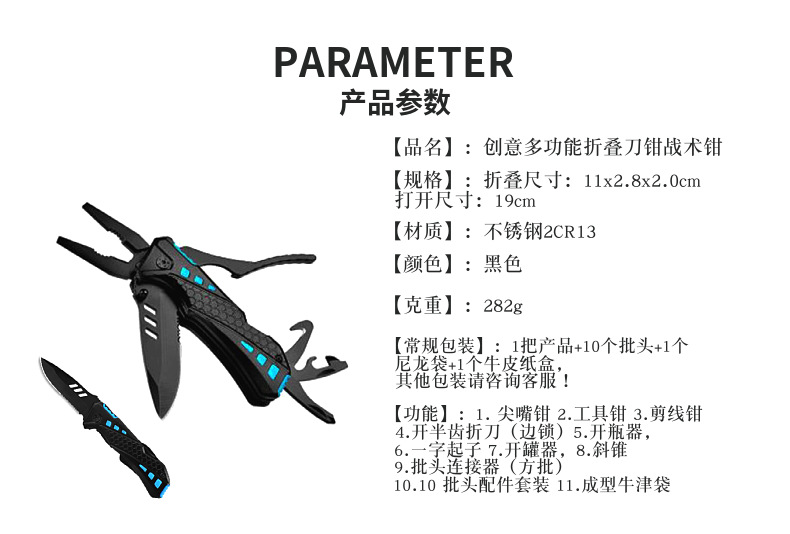 제조업체는 다기능 검정색 칼 펜치 13-in-1 다용도 소형 칼 펜치를 공급합니다.스토어 가기