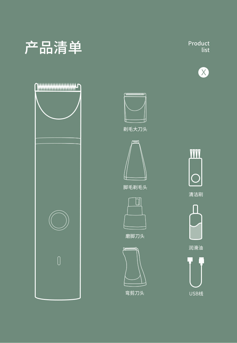 4 in 1 애완 동물 머리 면도기 개 고양이 전기 클리퍼 면도 발 머리깎기 머리깎기 머리깎기 개 머리 트리머