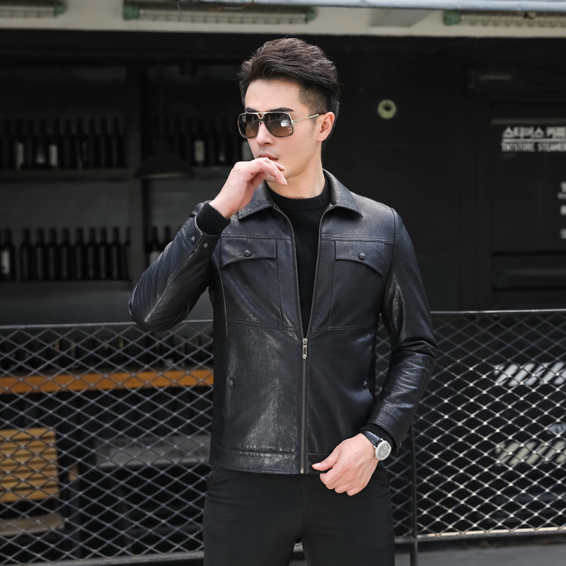 가을과 겨울 남자의 가죽 캐주얼 짧은 가죽 자켓 남자의 한국식 슬림 핏 기모 두꺼운 오토바이 남자의 가죽 자켓