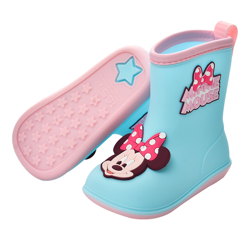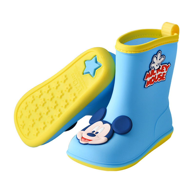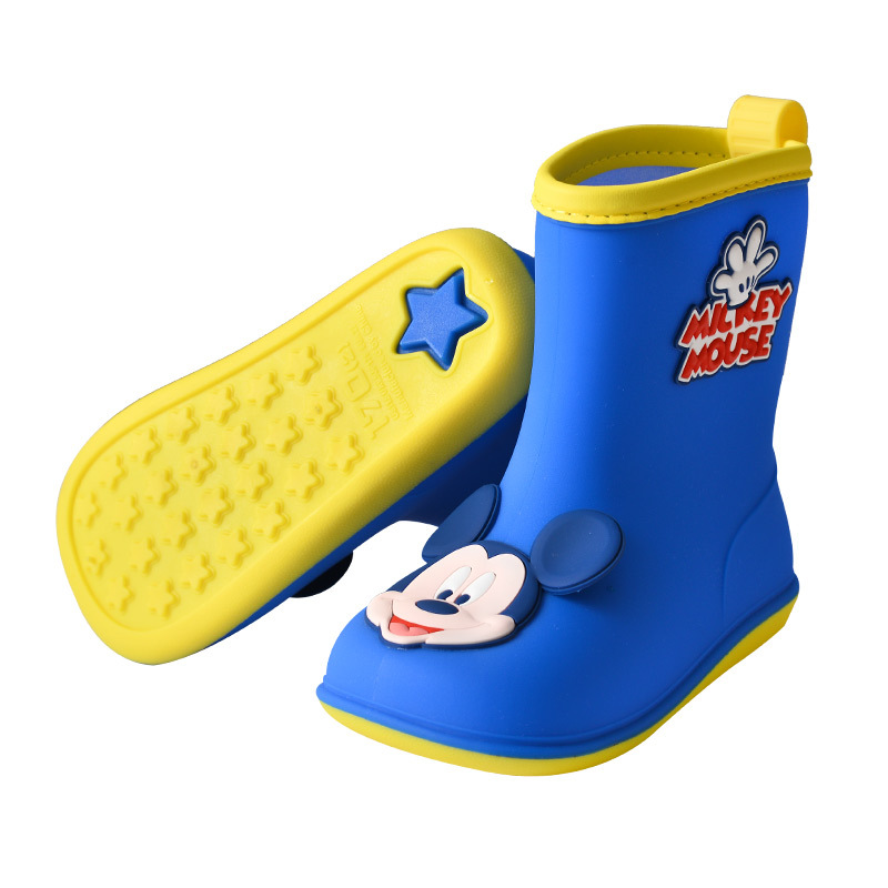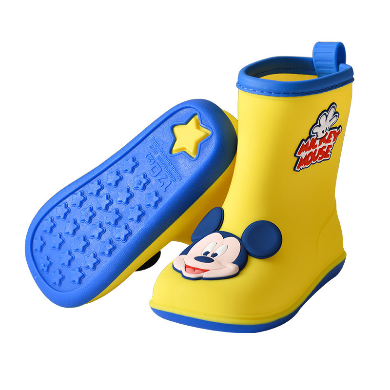 소년과 소녀를위한 새로운 미키 미니 어린이 레인 부츠 미끄럼 방지 아기 기모 면 플라스틱 물 부츠스토어 가기