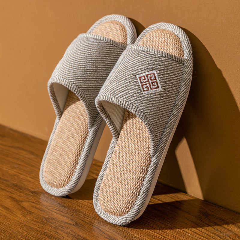 린넨 편안한 슬리퍼 커플 홈 실내 사계절 바닥 가정용 패브릭 미끄럼 방지 두꺼운 바닥 린넨 슬리퍼스토어 가기