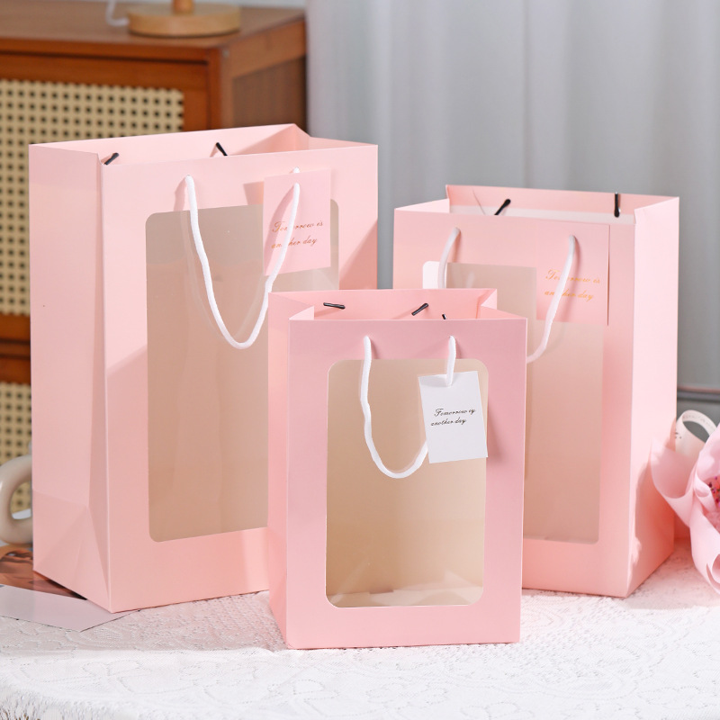 맞춤형 쇼윈도 선물 가방, 꽃 선물 핸드백, 맞춤형 창문형 인기 화이트 카드지 가방, 맞춤형 선물 가방