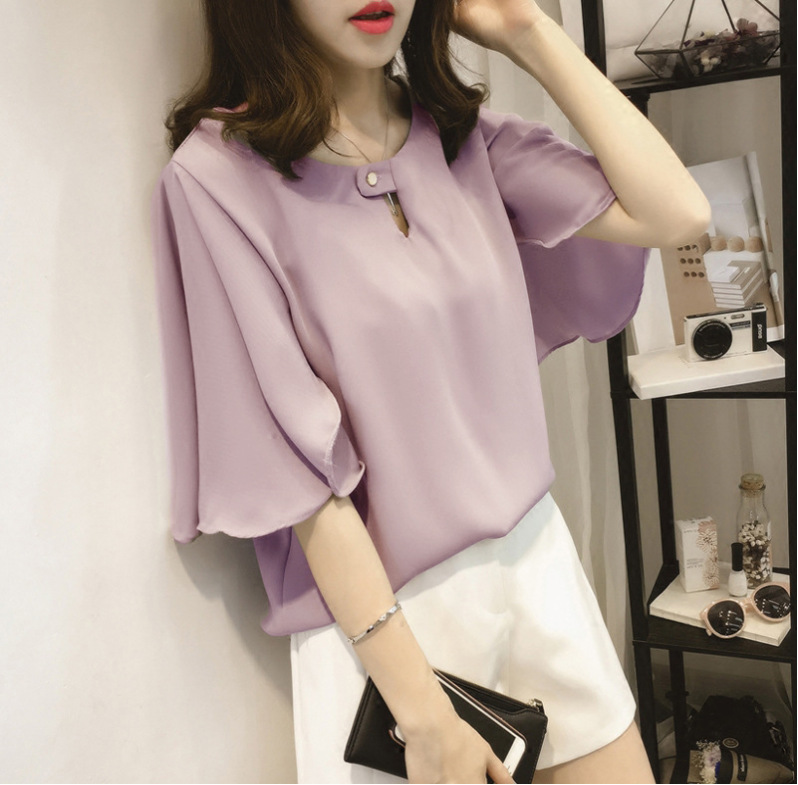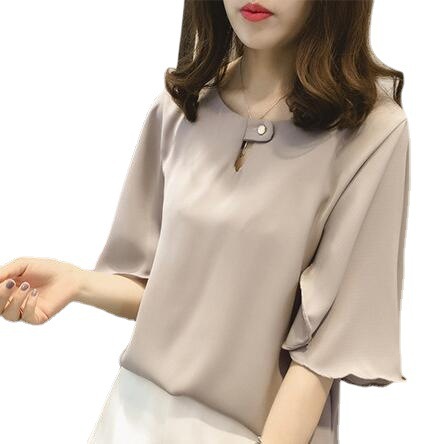 2024 봄과 여름 플러스 사이즈 플러스 사이즈 여성 의류 100kg 지방 MM 느슨한 슬림 반팔 티셔츠 탑 여성 쉬폰 셔츠스토어 가기