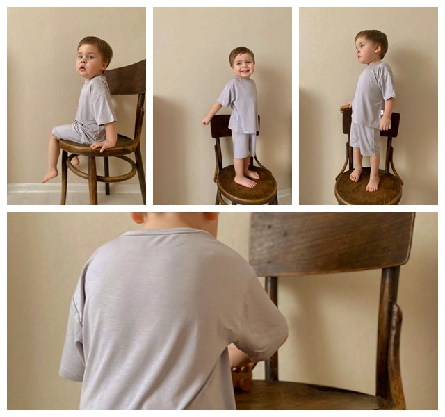 한국어 버전의 새로운 어린이 여름 정장 가정 의류 반팔 아동 의류 아기 소녀 소년 얇은 반바지 면화 실크 부드러운스토어 가기