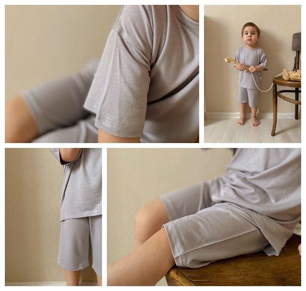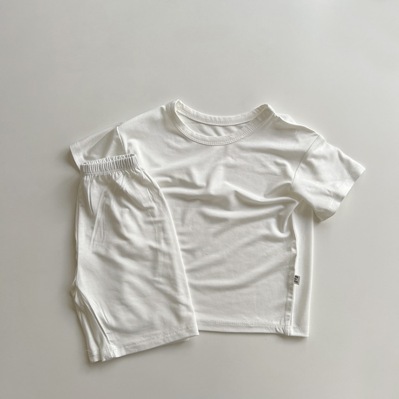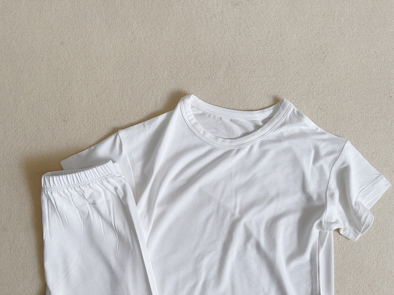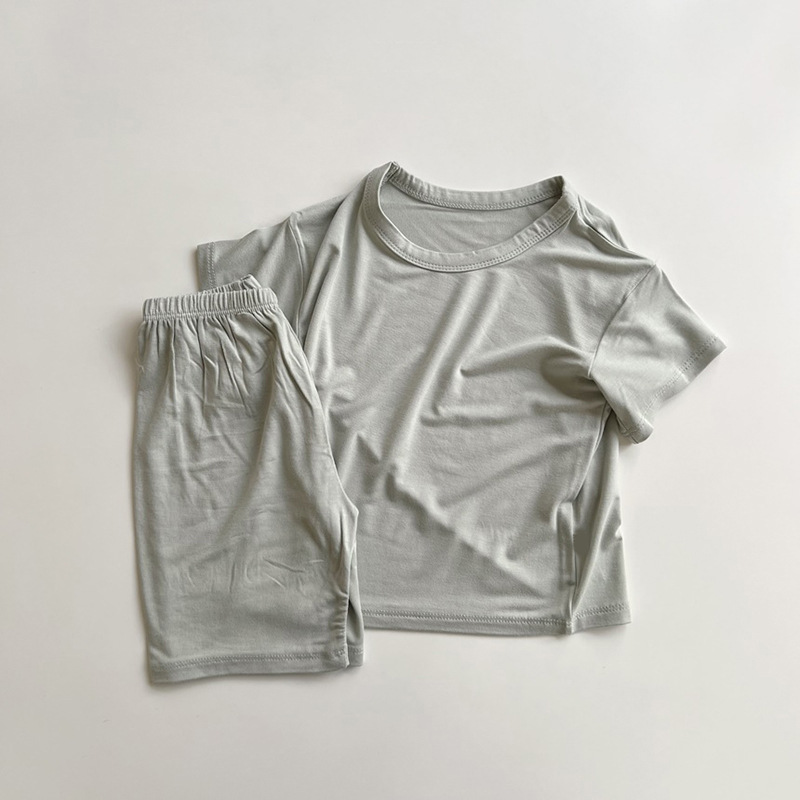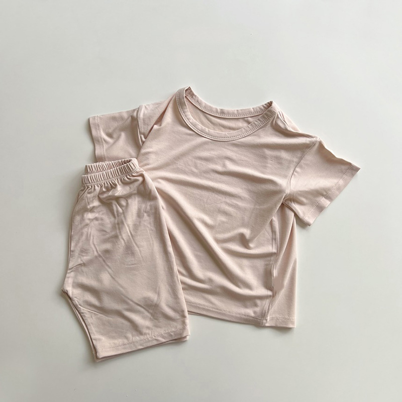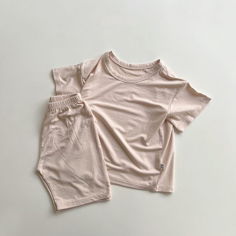 한국어 버전의 새로운 어린이 여름 정장 가정 의류 반팔 아동 의류 아기 소녀 소년 얇은 반바지 면화 실크 부드러운