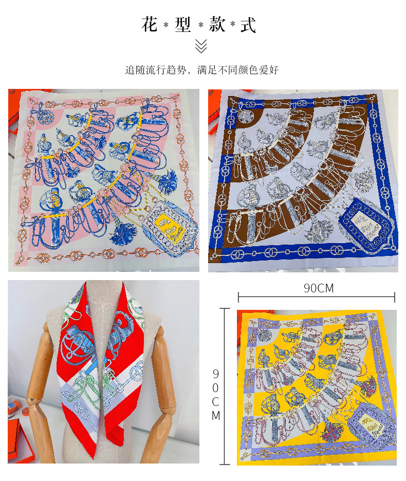 스퀘어 스카프 새로운 90 능직 실크 스카프 수제 샐리 한국 선 스크린 거즈 숙녀 인쇄 실크 스카프 도매
