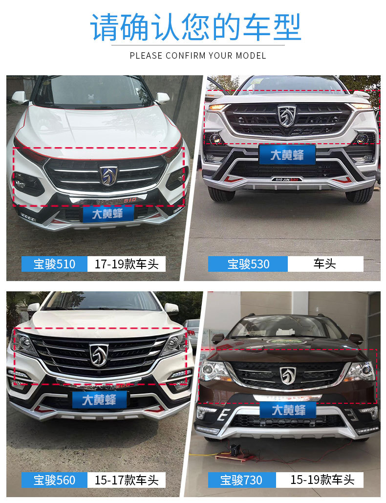 • Baojun 530 바 (메시지 5 또는 7)-전면 및 후면 바-아니요