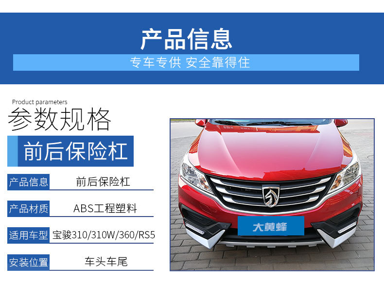Baojun 범퍼 310/510/560/360/530/730/RS5 전방 및 후방 범퍼 수정 충돌 방지에 적합