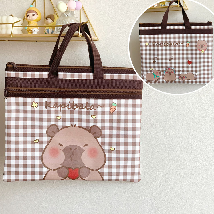 학생 튜토리얼 가방 kulomi 큰 귀 개 가방 가죽 A4 가방 만화 파일 가방 더블 지퍼 보관 가방스토어 가기