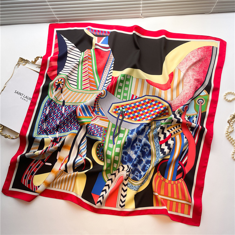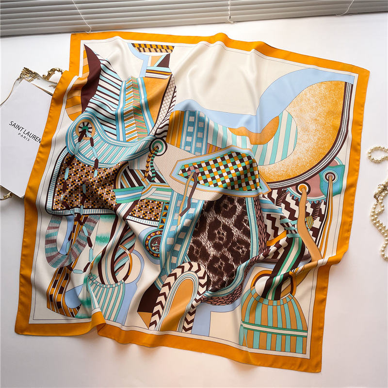 다채로운 색상 매칭 스카프 안장 패턴 큰 사각형 스카프 90cm 트윌 실크 스카프 봄과 가을 겨울 목도리 따뜻한 올 매치