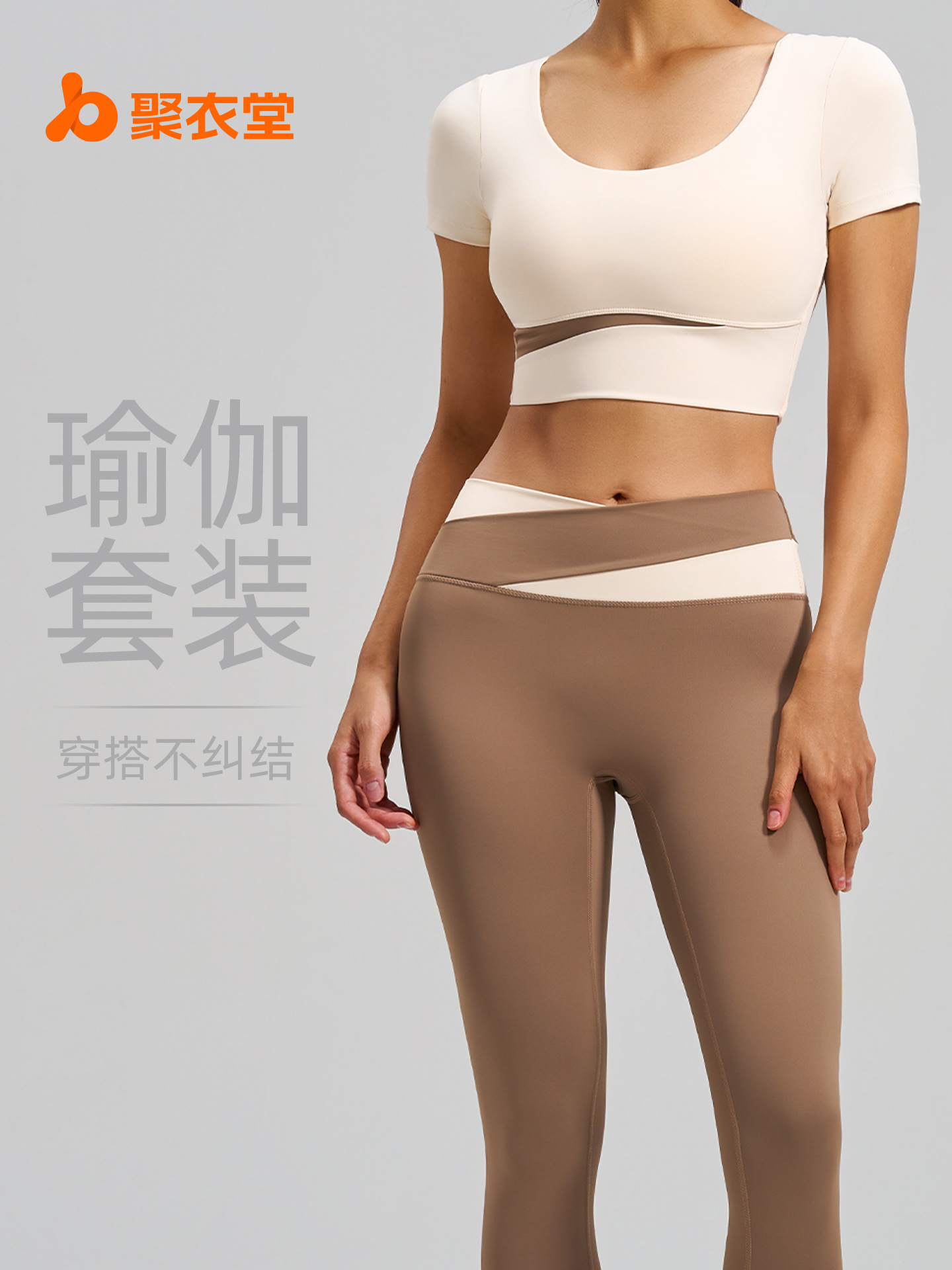 Juyitang 컬러 매칭 반팔 요가 세트 여성 봄과 여름 쇼트 탑 하이 웨이스트 힙합 팬츠 러닝 피트니스 세트스토어 가기