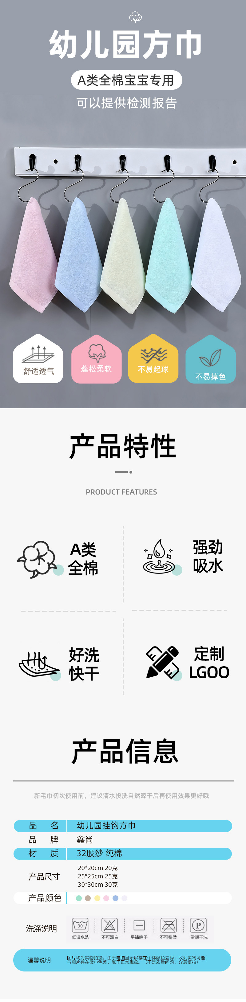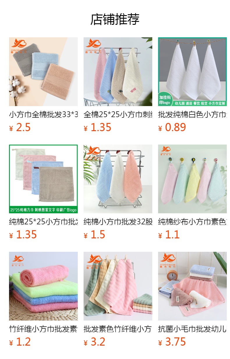 유치원용 순면 작은 사각 수건 25*25cm 단색 손목끈 달린 손수건 사각형 작은 수건 자수 맞춤 제작스토어 가기