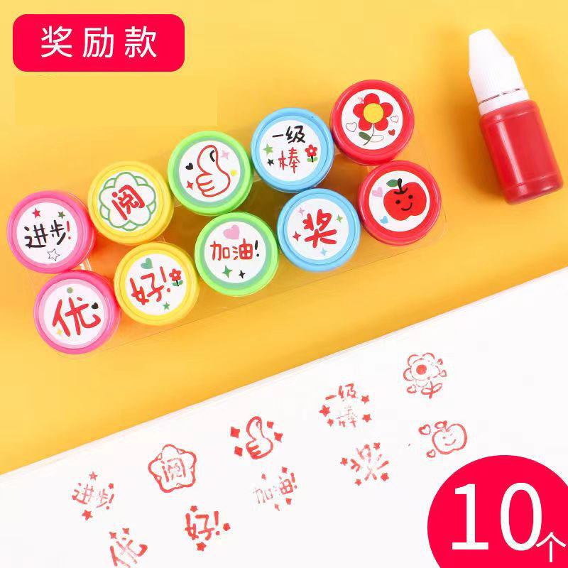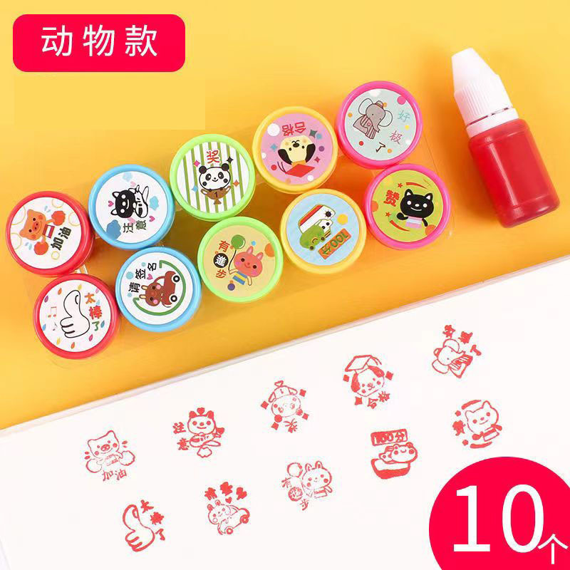 보상 물개 어린이 만화 스마일 유치원 교사가 교사의 의견을 봉인하고 숙제를 수정하도록 도장스토어 가기