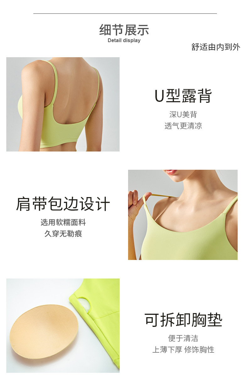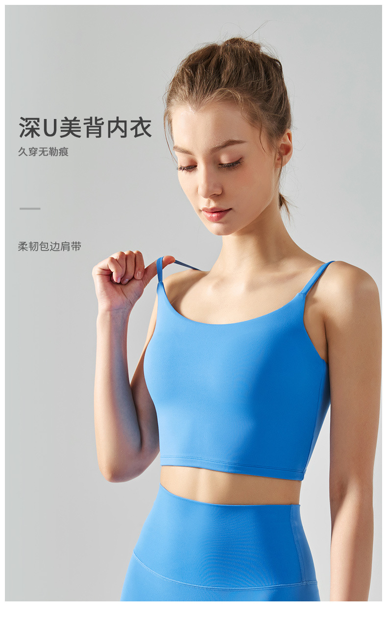 U 넥 누드 뷰티 백 스파게티 스트랩 요가 스포츠 조끼 여성 여름 겉옷 전문 러닝 트레이닝 피트니스 탑 브라