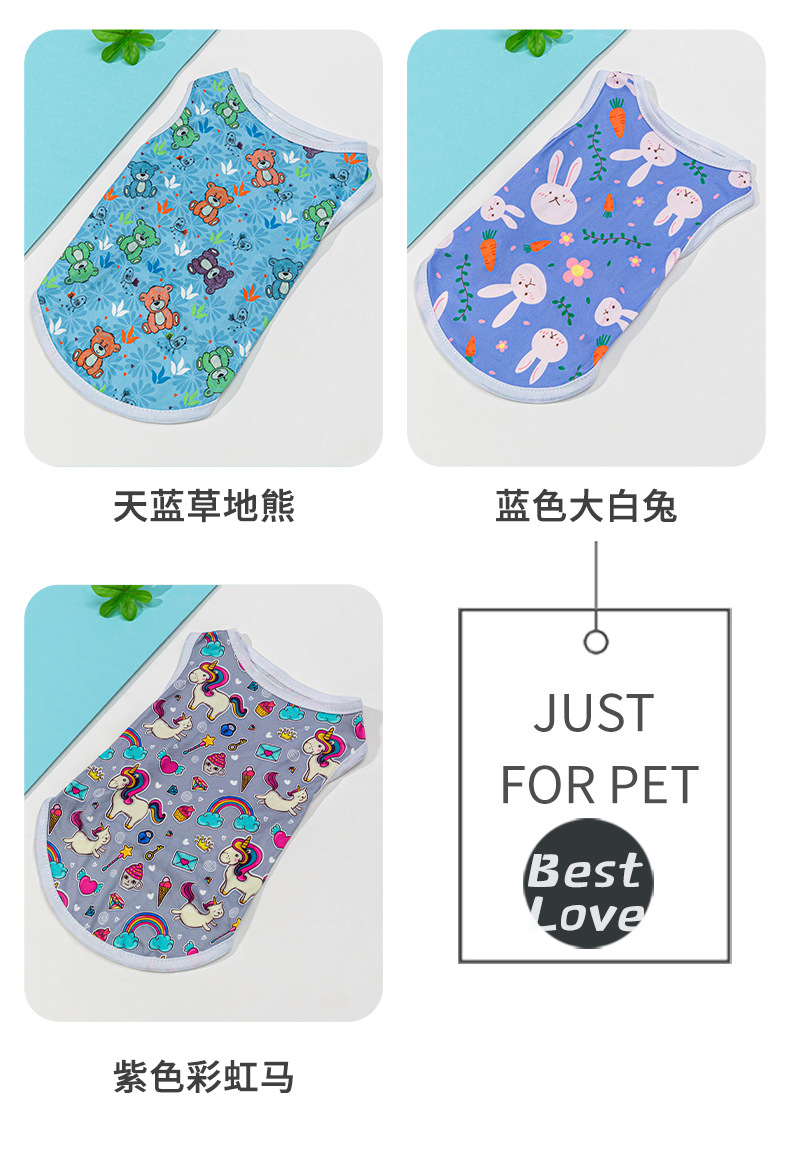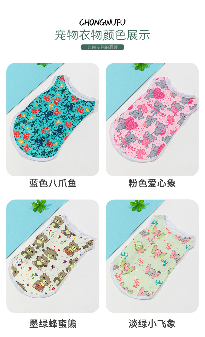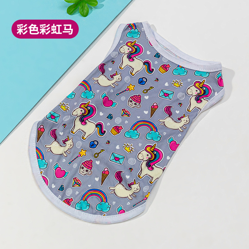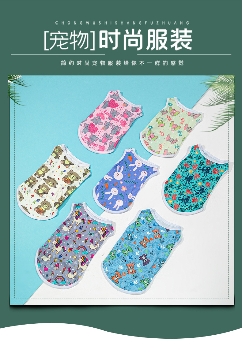 소스 공장 새로운 봄과 여름 애완 동물 의류 강아지 조끼 만화 인쇄 강아지 조끼 개 의류