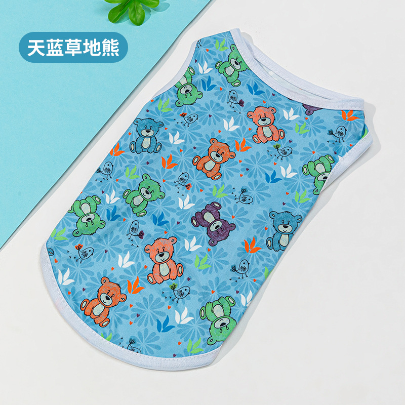 소스 공장 새로운 봄과 여름 애완 동물 의류 강아지 조끼 만화 인쇄 강아지 조끼 개 의류스토어 가기