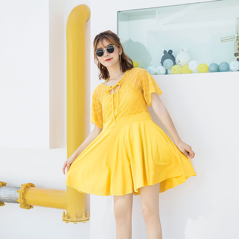 통통한 자매 수영복 여자의 여름 느슨한 플러스 사이즈 원피스 스커트 스타일 큰 가슴 모여 배꼽 커버 슬리밍 보수적 인 온천 수영복