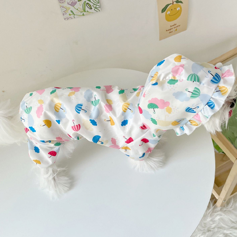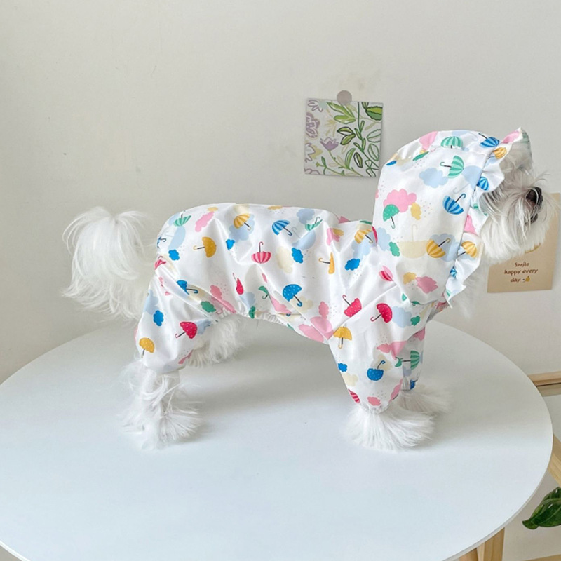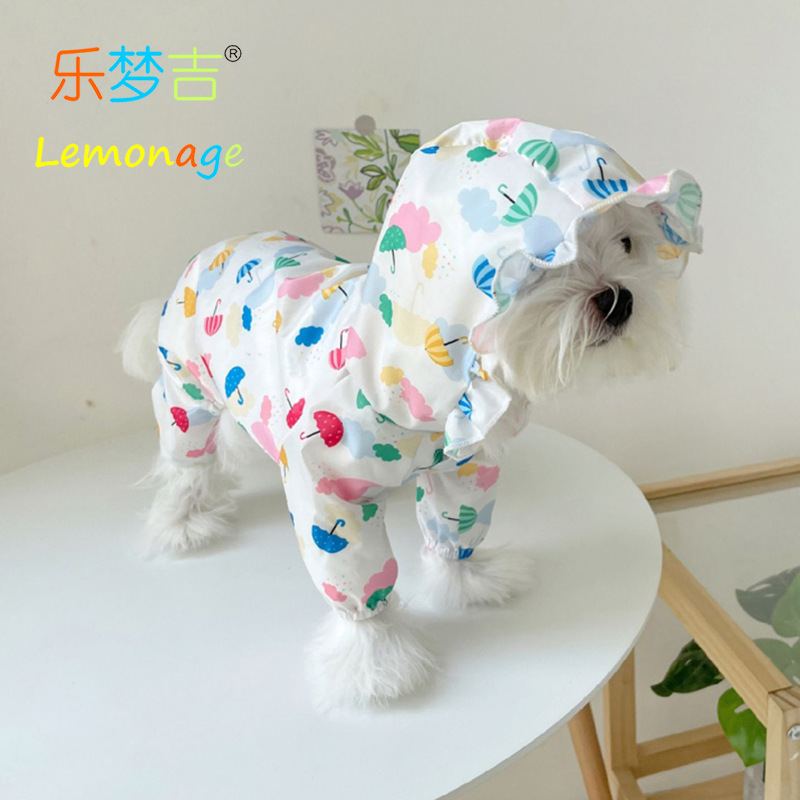 국경 간 재고 공장 도매 애완 동물 의류 봄과 여름 애완 동물 인쇄 우산 후드 방수 네발 비옷스토어 가기