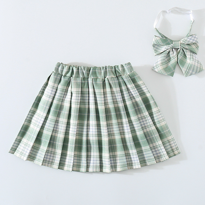 여아 JK 유니폼 스커트 초등학생을위한 봄과 가을 격자 무늬 정품 짧은 치마 큰 어린이 반 길이 플리츠 스커트 풀 세트