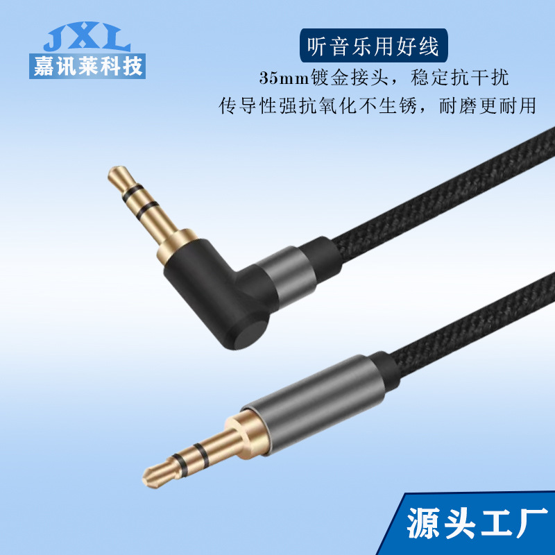1.5米3.5MM弯头编织音频线镀金加长公对公尼龙AUX线车载音频批发