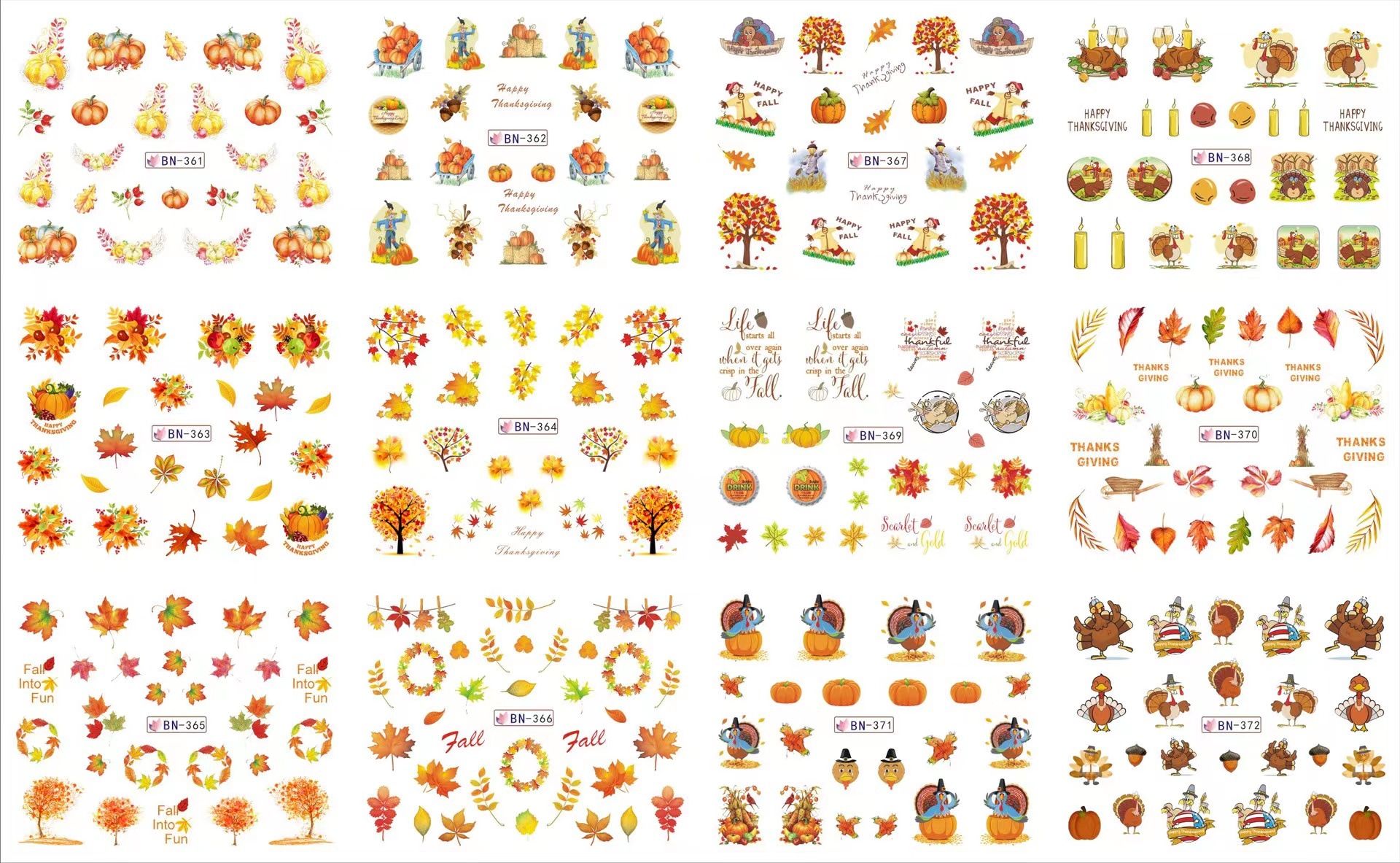 국경 간 대외 무역 공급 네일 아트 물 스티커 부활 토끼 계란 게임 추수 감사절 터키 메이플 호박은 물에 담가야합니다
