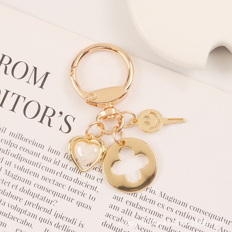 크리 에이 티브 네 잎 클로버 합금 키 체인 펜던트 DIY 사랑 스마일 키 액세서리 이어폰 커버 장식 가방 매달려 장식품