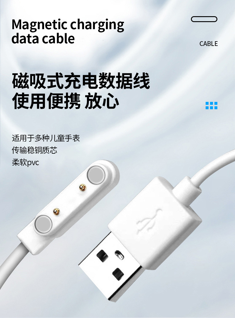 批发磁吸手环数据线 适用7.62智能手表水杯 小天才儿童电话充电线