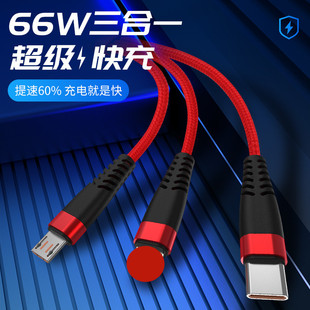 批发 三合一数据线 适用于66w一拖三typec华为安卓苹果手机充电线