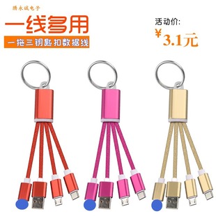 批发 铝合金三合一数据线手机充电线 尼龙编织钥匙扣一拖三充电线