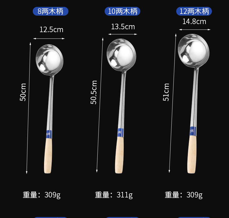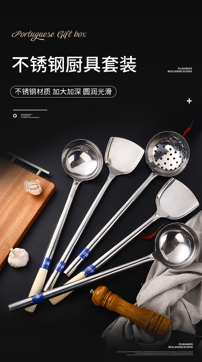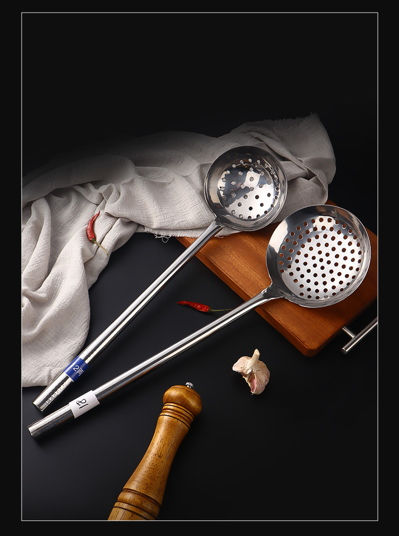 스테인레스 스틸 요리사 숟가락 주걱 스테인레스 스틸 주방 큰 스푼 긴 손잡이 큰 스푼 나무 손잡이 강철 손잡이 주걱 큰 누출