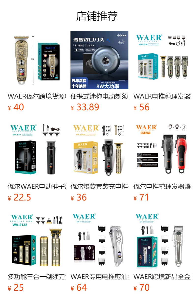 국경 간 WAER 헤어 클리퍼 특수 전기 헤어 클리퍼 플러그인 헤어 살롱 전기 클리퍼 푸시 파워 클리퍼스토어 가기
