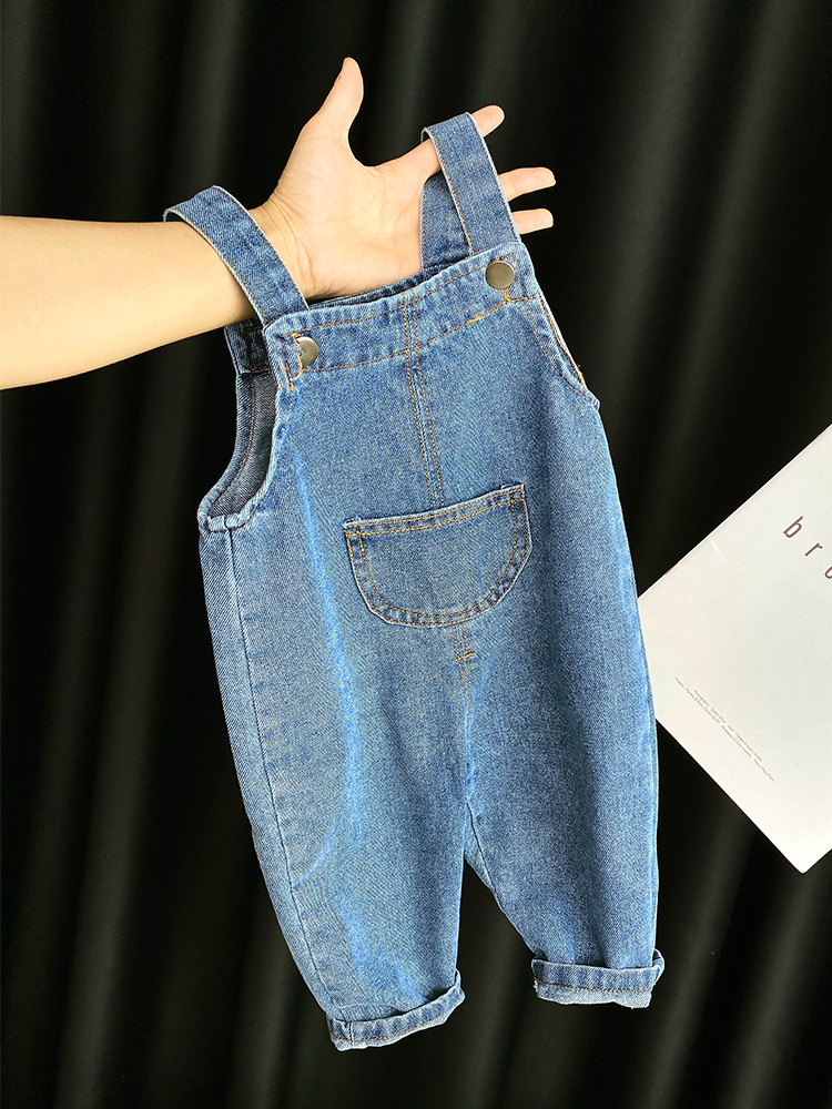 어린이 아기 데님 스트랩 바지 봄과 가을 아기 3 소녀 1 세 서양 스타일 봄 캐주얼 긴 바지스토어 가기